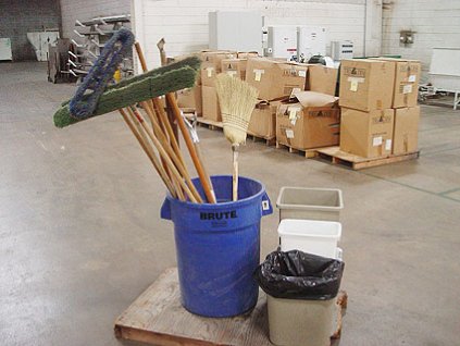 Lot #3397 - Rubbermaid Brute Trash Can, Brooms and Shovels