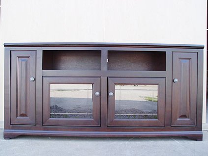 Lot #1418B - Coastal Caribbean Rum Thin Screen TV Stand with Bookcase Sides