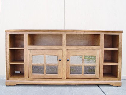 Lot #1455A - Oak Ridge Medium Tone Thin Screen TV Stand with Bookcase Sides #93543