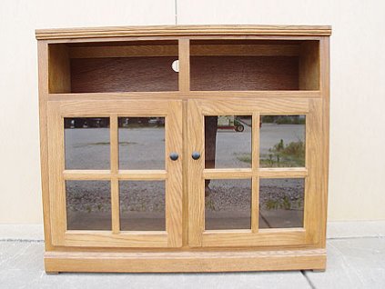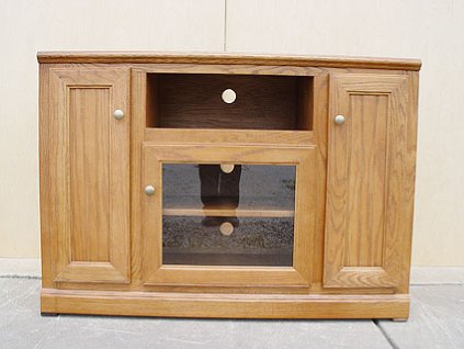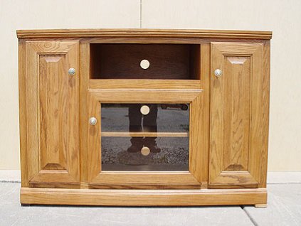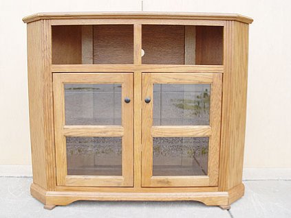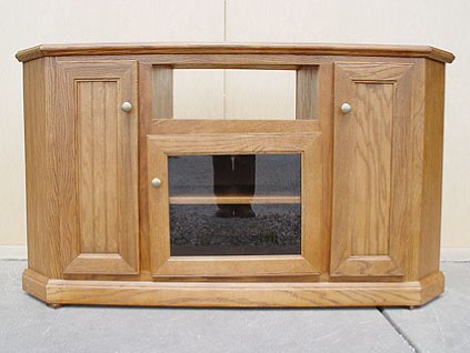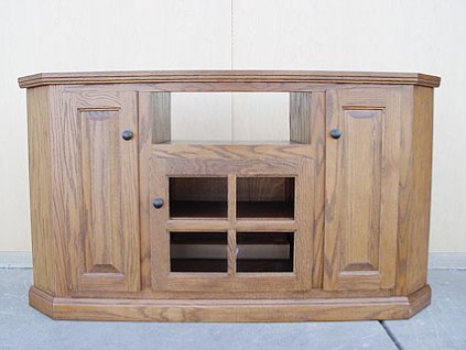 Lot #1556 - Oak Ridge Medium Tone Thin E60 Tall Corner Entertainment Consoles #93766