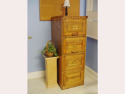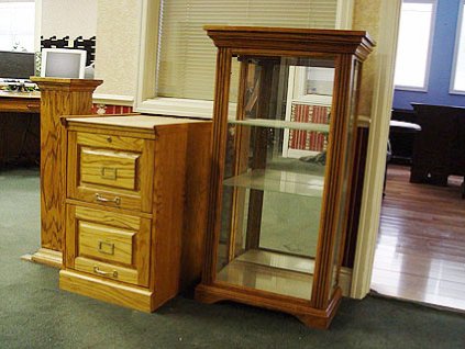 Lot #2477 - Eagle Oak Wood File Cabinet, Curio and Plant Stand