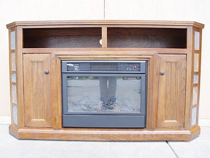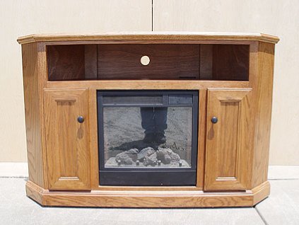 Lot #2485 - Eagle Oak Wood Corner TV Stand with Electric Fireplace (Unused)