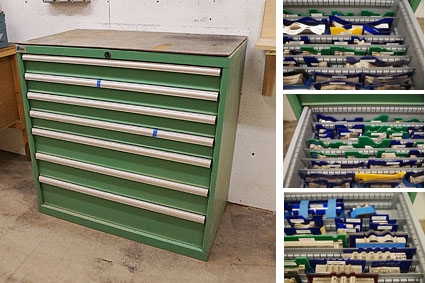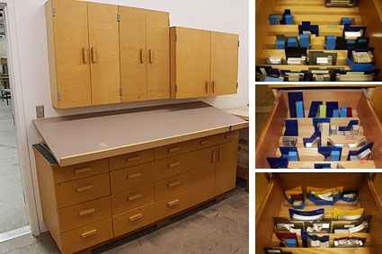 Lot #20 - Moulder Profile Knife Inventory With Samples And Storage Cabinets