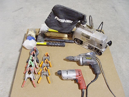 Lot #821 - Porter Cable Belt Sander, Screw Guns, Clamps, Mallets