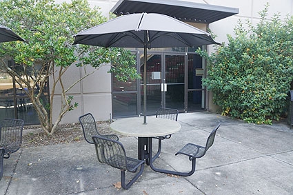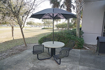 Lot #417 - Landscape Forms Outdoor Break Table With Sun Screen