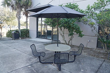 Lot #416 - Landscape Forms Outdoor Break Table With Sun Screen