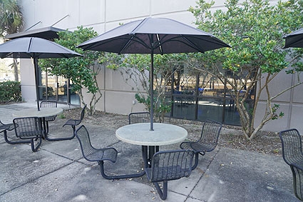 Lot #415 - Landscape Forms Outdoor Break Table With Sun Screen