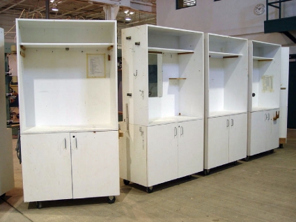 Lot #344 - Wood Rolling Employee Work Cabinets & Contents (Qty 7)