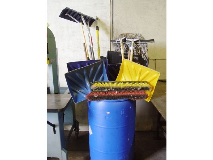 Lot #50 - Barrel of Shovels, Brooms & Mops