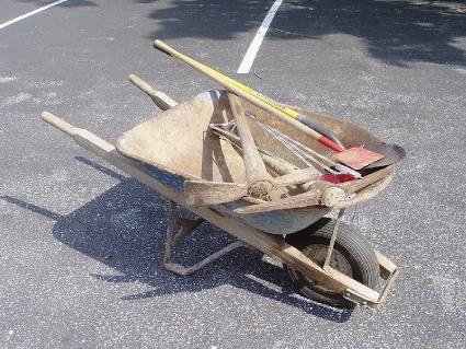 Lot #51 - Wheel Barrow with Shovels & Picks