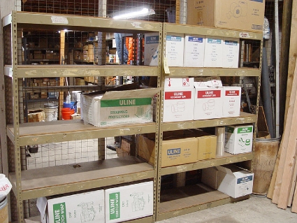 Lot #66 - Packaging Supplies – Boxes, Tape, Protectors, Stretch Wrap and Metal Shelving Units