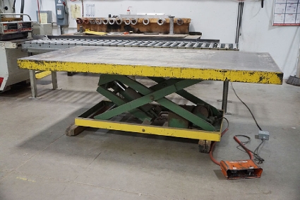 Lot #41 - Bulk Bid on Mereen Johnson 312-DC-1 Gang Rip Saw, American M-1202 (6,000 Lb. Capacity) Hydraulic Scissor Lift Table & Timberland Rubber Belted Conveyor Table (Consisting of Lot #41A, Lot #41B, & Lot #41C)
