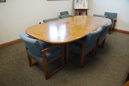 Lot #412 - Conference Room Table, Chairs and Chest of Drawers