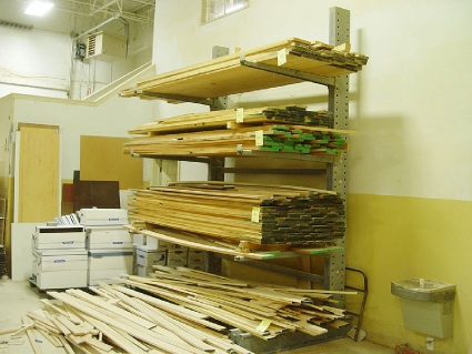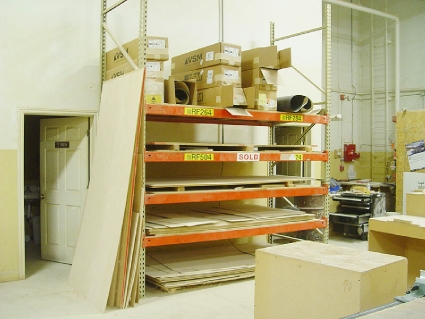 Lot #67 - Pallet Rack and Sheet Stock *SANDING BELTS ON TOP SHELF NOT INCLUDED*