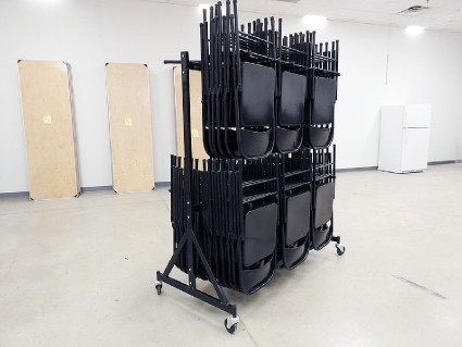 Lot #322 - Steel Rolling Rack with Folding Chairs