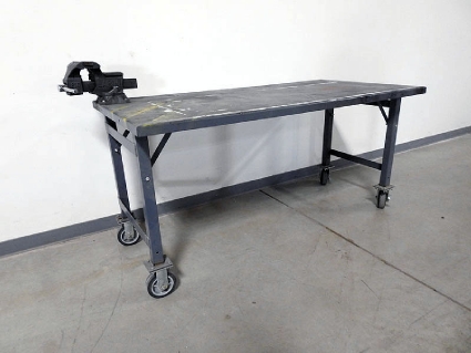 Lot #361 - Larin 616 Swivel Base Pipe/Jaw Bench Vise Mounted on Steel Rolling Table