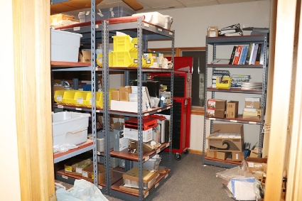 Lot #135 - Contents of Room (Hardware, Ladder, Adhesive, Sanding Belt, Tool Chest, Office Supplies, Etc.)