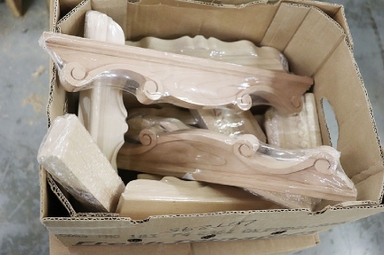 Lot #295 - Maple Corbel Shelf Brackets, Corbels, Hardware (3-Box Lot) *DOLLY NOT INCLUDED*