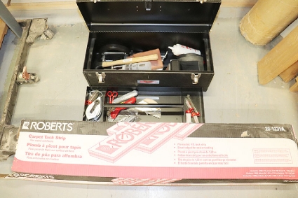 Lot #384 - Gundlach Carpet Tool Box and Box Carpet Tax Strips