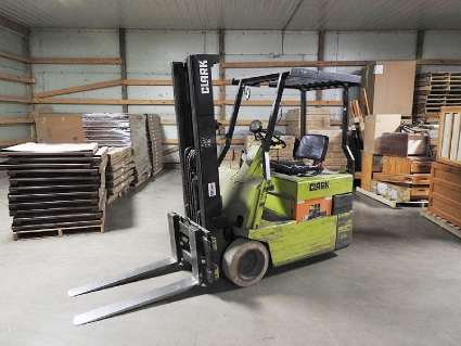 Lot #406 - Clark 36 Volt Electric 3-Wheel Forklift w/ Hertner Battery Charger