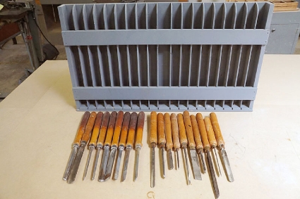 Lot #138 - Craftsman and Greenlee Lathe Turning Tools with Storage Rack