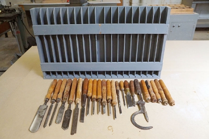 Lot #139 - Buck Brothers and Greenlee Lathe Turning Tools with Storage Rack