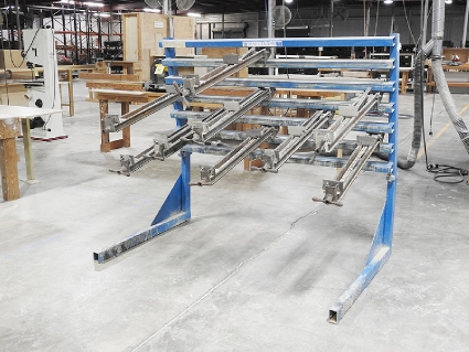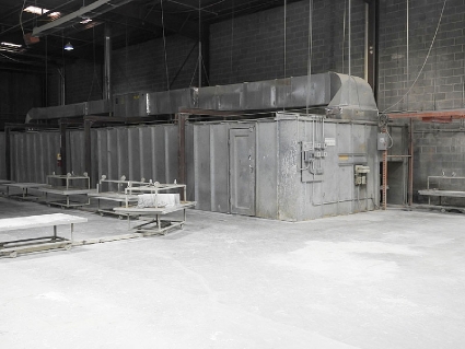 Lot #77 - Bulk Bid of Chain-Driven Cart Tow Line w/ (45) Carts, Spray Booth, Sames Kremlin Airmix 15C25 Pneumatic Pump w/ Spray Gun, Barton Associates Oven w/ Top-Mounted Temp-Air Heater & Pallet Rack Section w/ Heating Pod - Consisting of Lot #77A, Lot #77B, Lot #77C, Lot #77D and Lot #77E