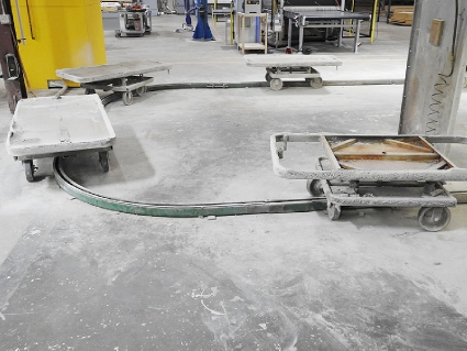 Lot #78 - Bulk Bid of Chain-Driven Cart Tow Line w/ (16) Carts, (2) Devilbiss Spray Booths & Sames Kremlin Airmix 20C50 Pneumatic Pump w/ Spray Gun - Consisting of Lot #78A, Lot #78B, Lot #78C and Lot #78D
