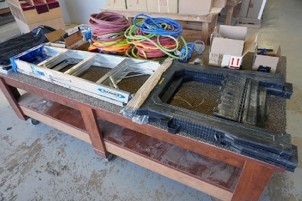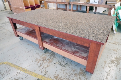 Lot #254 - Large Carpeted Shop Table w/ Wheel Casters
