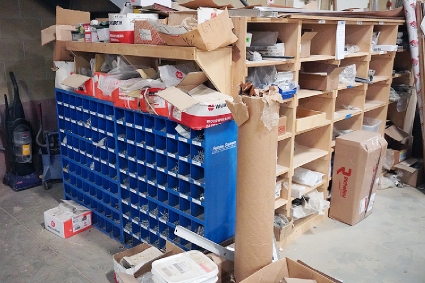 Lot #170 - Assortment of Misc. Hardware and Storage Bins and Racks