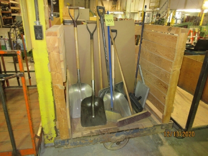 Lot #439 - Brooms, Shovels and Factory Cart