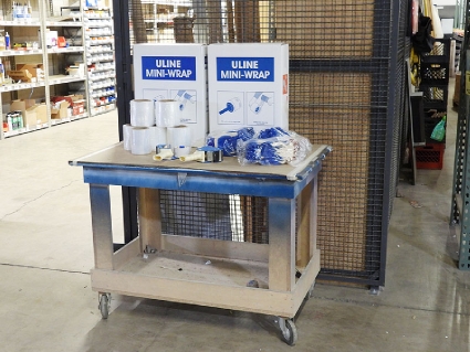 Lot #354 - Cart with Contents, Unused (Rolls of Wrap, Tape Guns, Gloves)