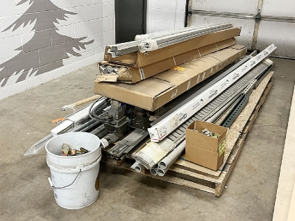Lot #369 - Extrusions, Posts, Plastic Wire Mold, Shelf Track Material, Slat Wall Snap-In Inserts and Miscellaneous