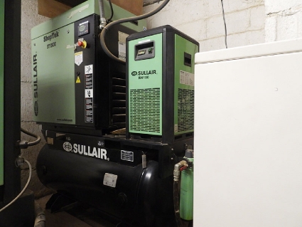Lot #9 - Sullair Shoptek ST1500 Compressor, RN100 Air Dryer, Horizontal Air Tank Filter and Mounting Stand