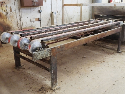 Lot #35 - Shop-Made (3-Spindle) Horizontal Routing Machine w/ (3) Porter Cable Routers & 6 Roll Power Feeder