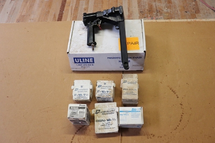 Lot #111 - Uline H-1028 Pneumatic Carton Stapler and Paslode Staples