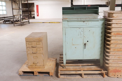 Lot #322 - Shipping Clerks Desk, Filing Cabinet and Cart