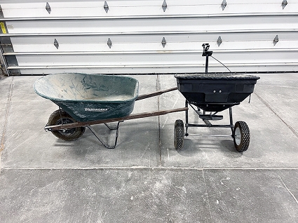 Lot #101 - Wheel Barrow and Pull Behind Spreader