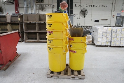 Lot #593 - Rubbermaid Brute Commercial Waste Cans, Brooms And Shovels