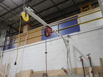 Lot #84 - Steel Post and Bridge with Mounted Spring-Loaded Air Hose and Electrical Reels