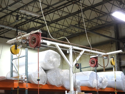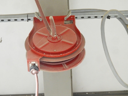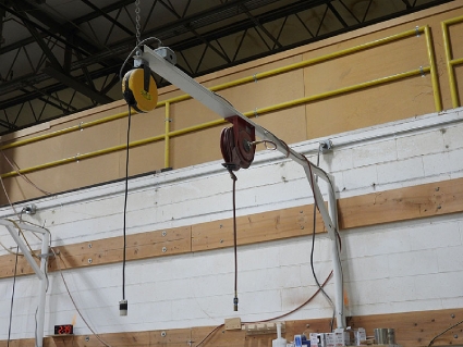 Lot #62 - Steel Post and Bridge with Mounted Spring-Loaded Air Hose and Electrical Reels
