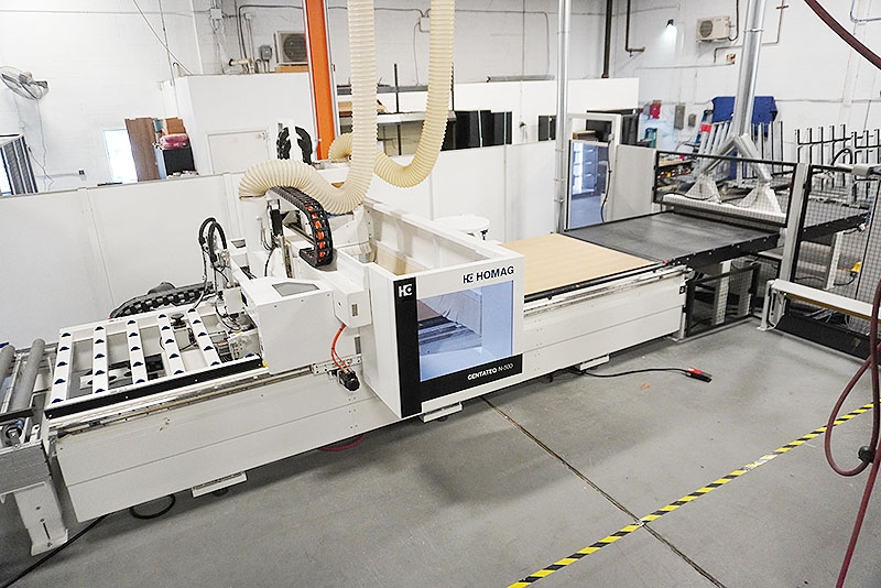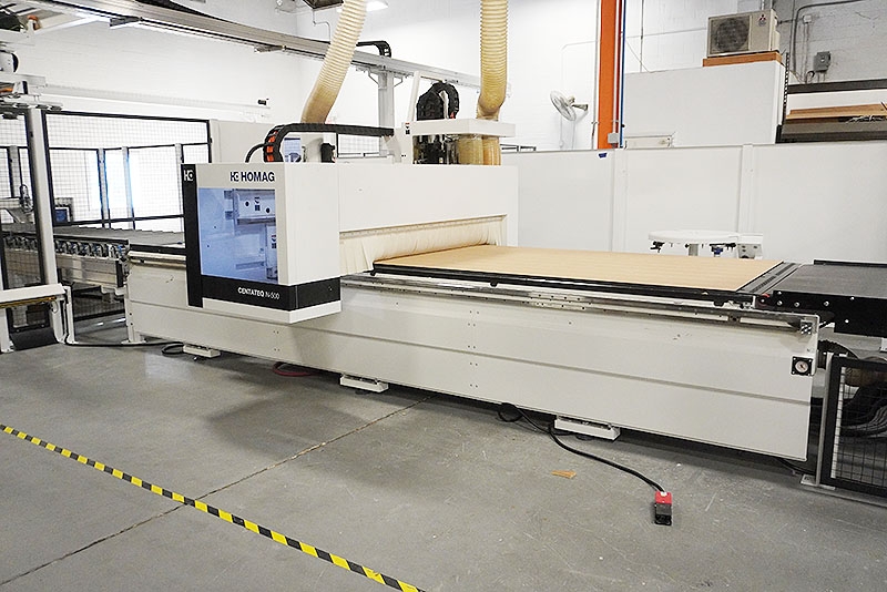 Homag Centateq N-500 (Optimat BHP100/37/15/R/US) CNC Router w/ Infeed, and Outfeed Conveyor w/ Panel Blow-Off, (2) Busch Vacuum Pumps and Zebra Printer (2023)