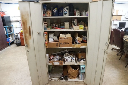 Lot #184 - Steel Storage Cabinet With Plumbing And Shop Supplies