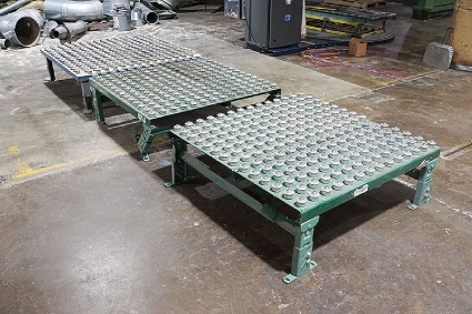 Lot #129 - Hytrol and Roach Gravity Roller Conveyor Tables With Legs