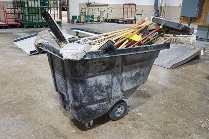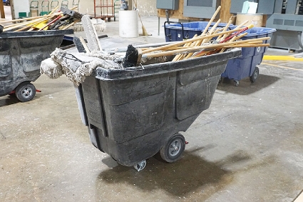 Lot #156 - Rubbermaid Commercial Hopper Cart With Shop Brooms