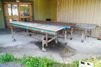 Lot #50 - Roller Conveyors w/ Rolling Jacks (Qty of 3)