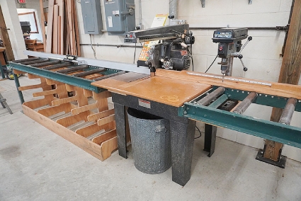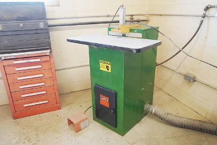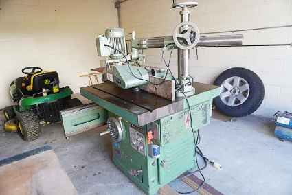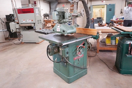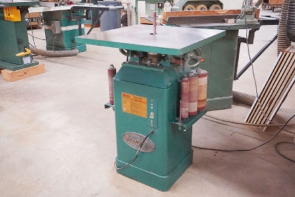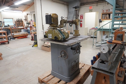 Lot #13 - Polamco DFDA-4 Sliding Table Spindle Shaper with Steff 34 (3-Roll) Power Feeder and Cabinet of Tools