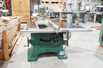Lot #10 - Whitney 77 Tilting Arbor Table Saw With Holz Four Roll Stock Feeder
