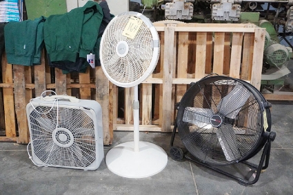 Lot #164 - Ecomax Drum Fan, Lasko Pedestal Fan & GE Box Fan