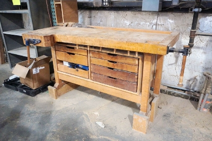 Lot #274 - Wooden Work Bench with Vises & Contents